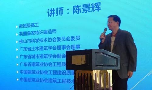 讲座开始之际,首先由广东省建筑业协会梁剑明会长上台致辞,梁会长表示在过去的一年里,建筑行业中出现了颇多的安全事故,为我们敲醒了警钟,其表示建立一个企业的品牌不易,因此我们务必要把安全生产作为重中之重的管理工作。